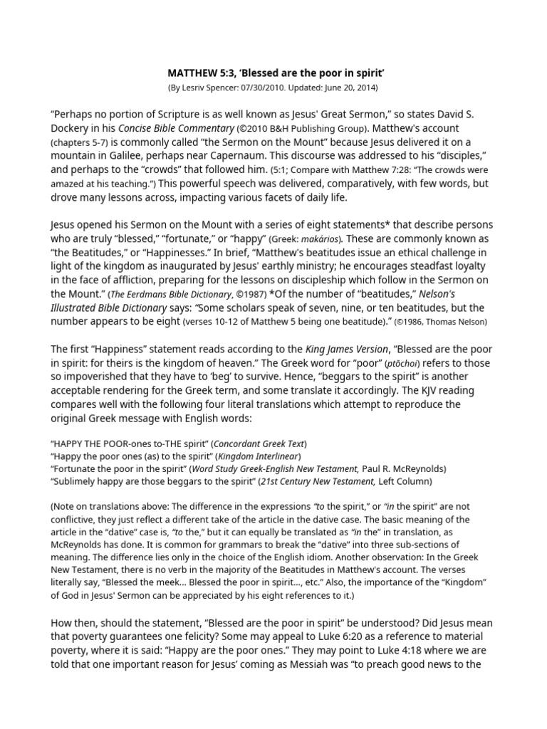 It is a matter of being humble. The meek person submits to god! What did jesus mean by saying blessed are the poor in spirit, for theirs is the kingdom of heaven? Our text is in the sermon on the mount, matthew 5:4 : What does jesus mean when he says, i tell you the truth? in which verses does this occur in the sermon on the mount?